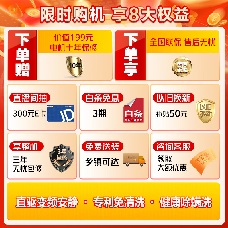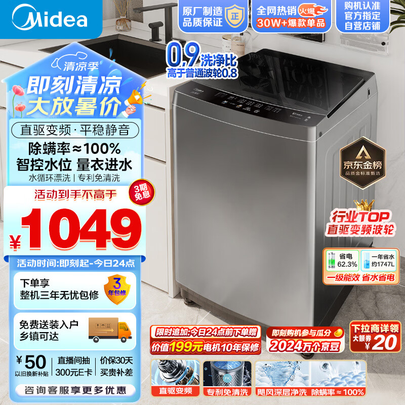 美的(Midea)波轮洗衣机全自动 V13DB 10公斤 直驱变频电机 健康除螨 免清洗 随心洗系列 MB100V13DB价格:1049.00元!