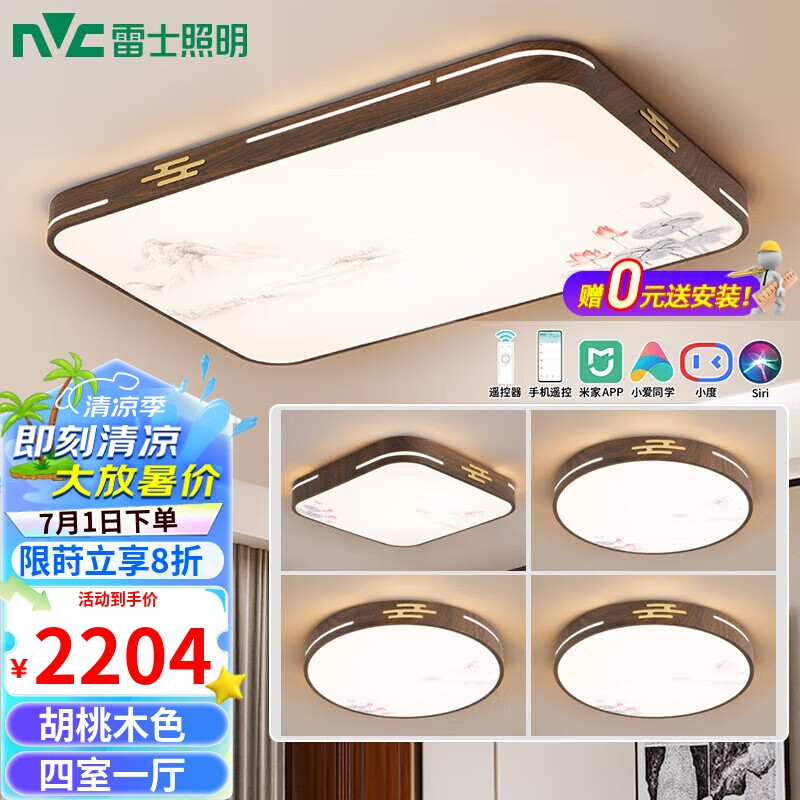 雷士(NVC)LED吸顶灯客厅灯铁艺复古灯具新中式智能典雅套餐WHXD108W/F-04价格:2755.00元!