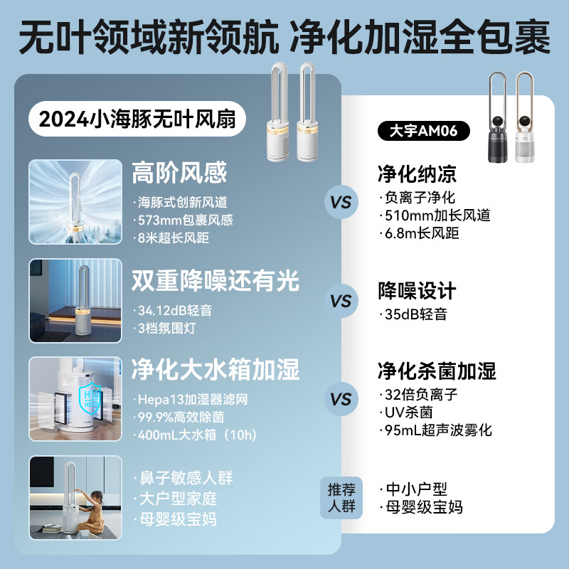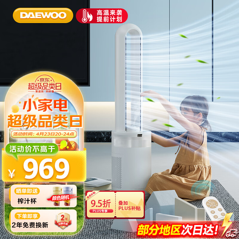 大宇(DAEWOO)【风随温变】母婴级无叶风扇小海豚电风扇净化加湿轻音包裹风感氛围灯空调扇HEPA13落地扇AM08价格:1169.00元!