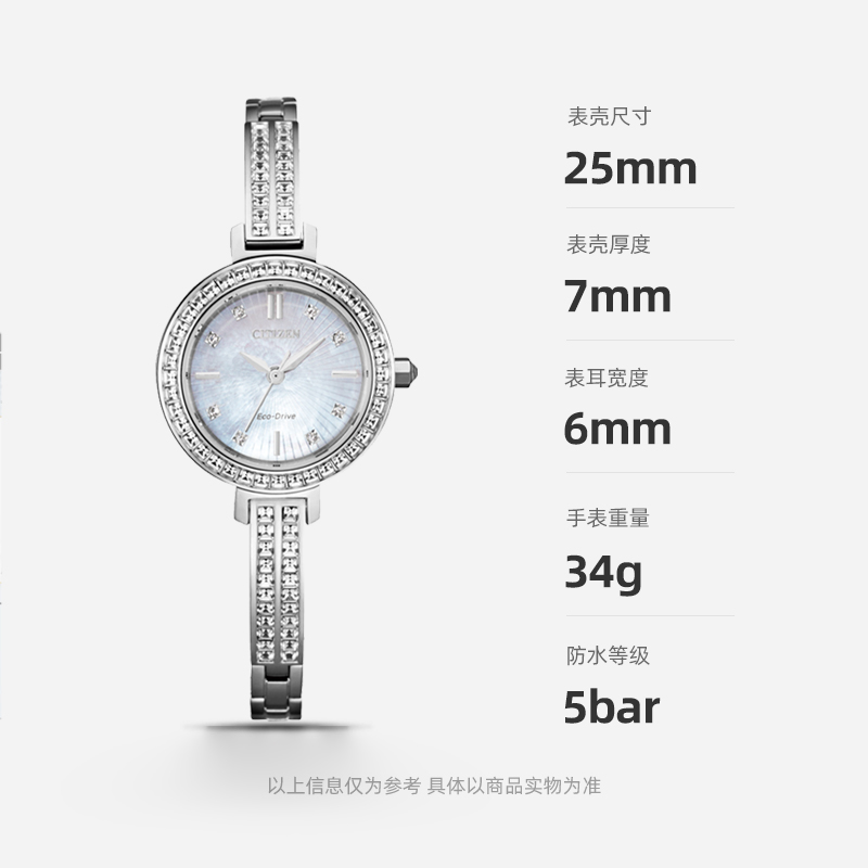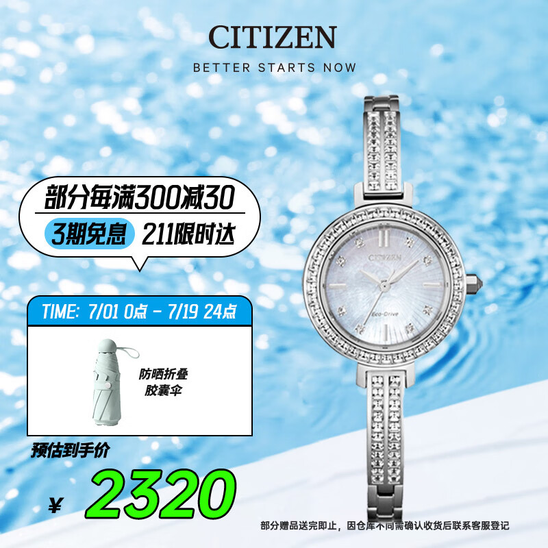 西铁城(CITIZEN)手表女日韩表光动能贝母表盘钢带商务学生送长辈礼物EM0860-51D价格:2560.00元!
