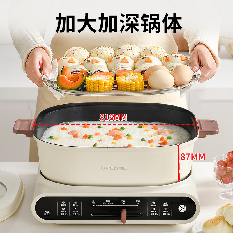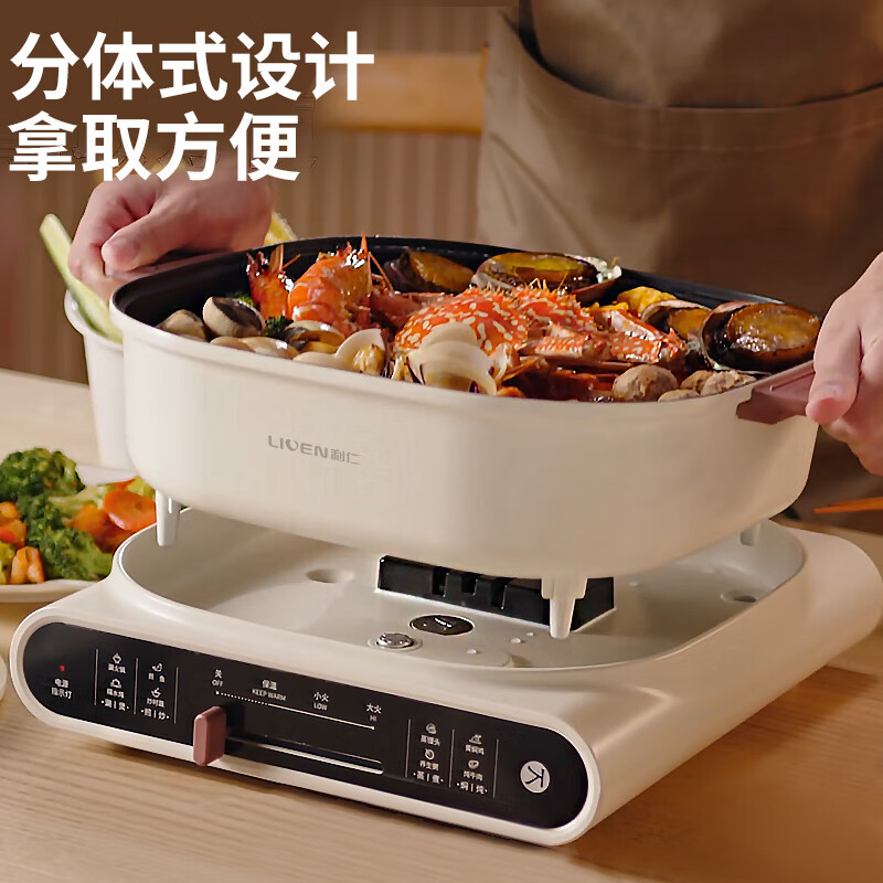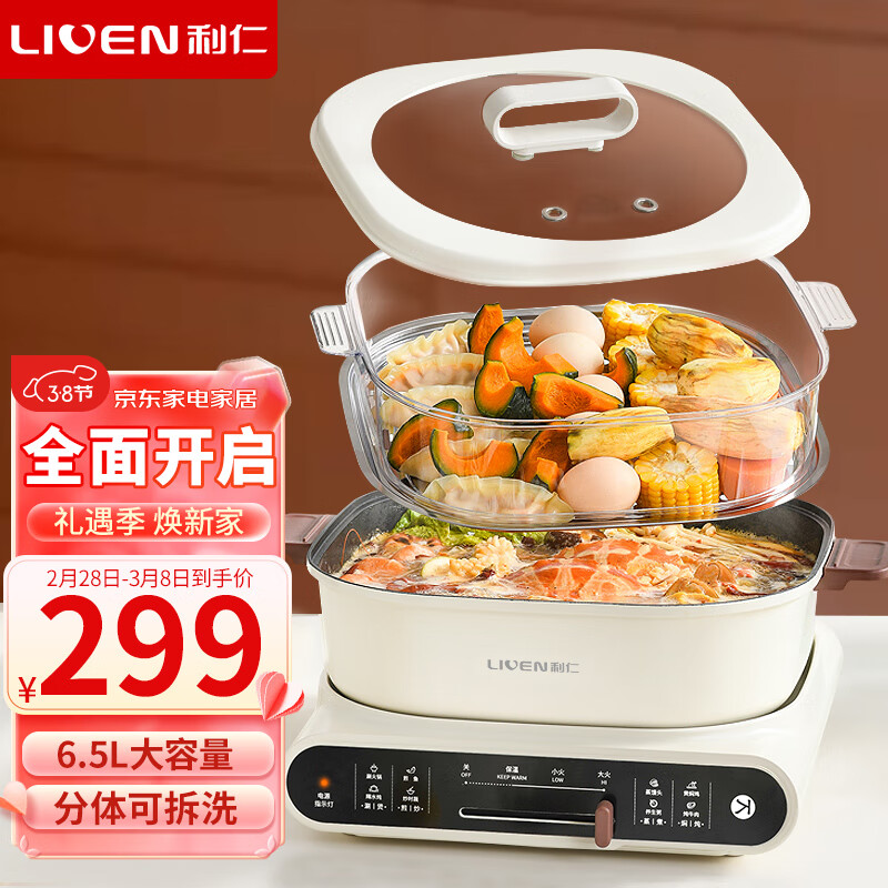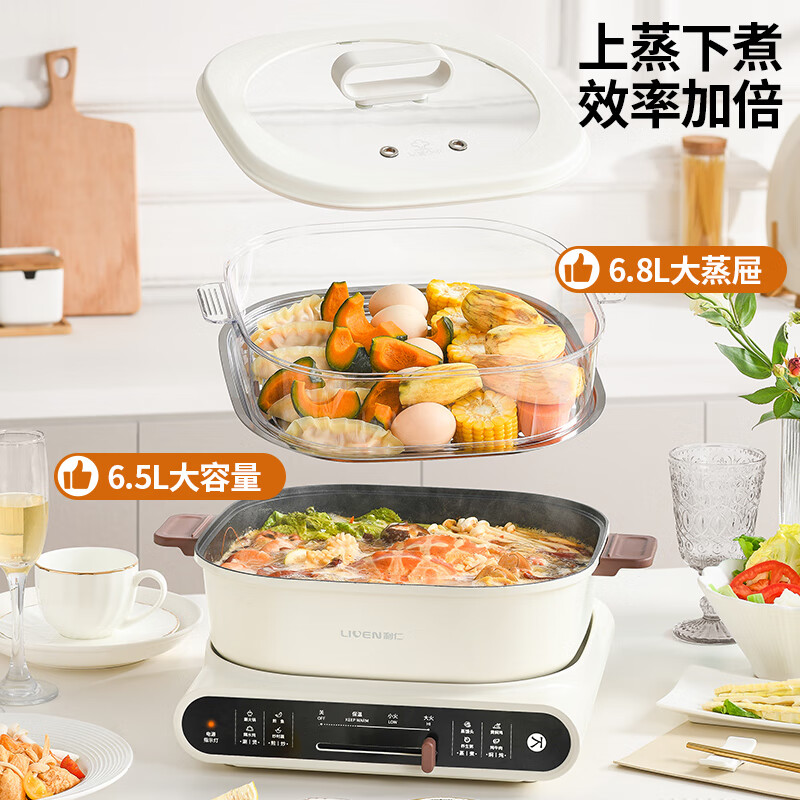 利仁(Liven)电火锅家用6.5升火锅专用锅电煮锅大蒸屉电蒸锅分体式电热锅电炒锅多用途锅DHG-J652价格:299.00元!