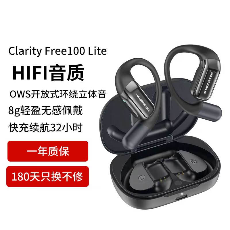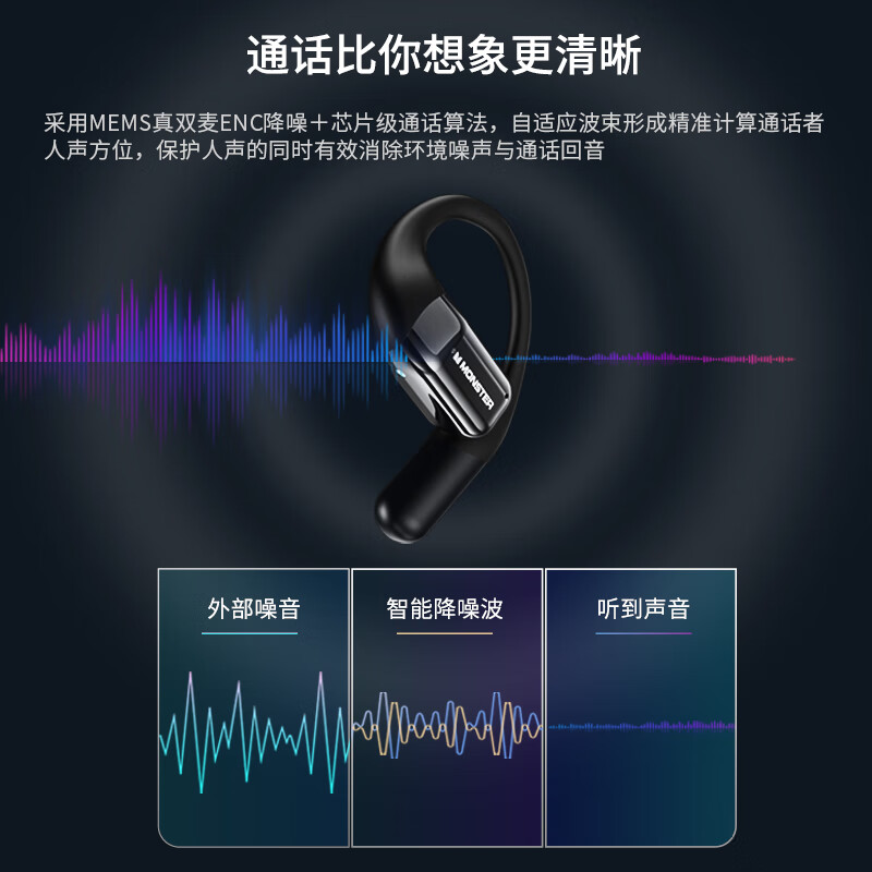 魔声(MONSTER)Clarity Free100 Lite挂耳式蓝牙耳机 真无线降噪跑步运动不入耳 游戏音乐耳机降噪通用 太空黑价格:309.00元!