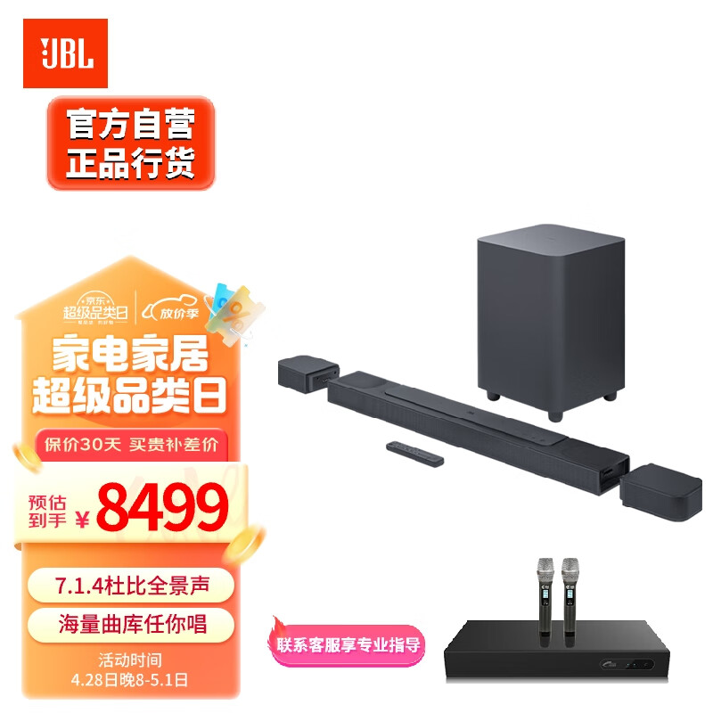 JBL BAR1000 次旗舰款 7.1.4杜比全景声 回音壁 家庭影院 无线环绕 音响 电视音箱套装 Soundbar 价格:8499.00元!
