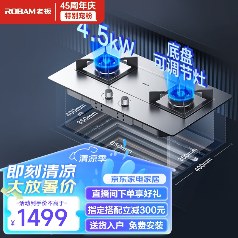 老板(Robam)家用燃气灶液化气 4.5kW嵌入式不锈钢燃气灶 耐用易打理灶具灶台猛火灶 换灶不改孔37G7A价格:1499.00元!