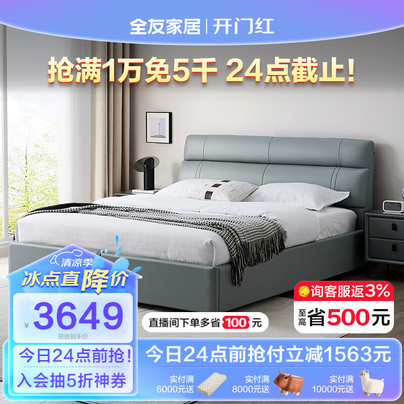 全友家居 真皮艺床头层牛皮现代简约主卧室双人大床高箱储物床105251价格:5212.86元!
