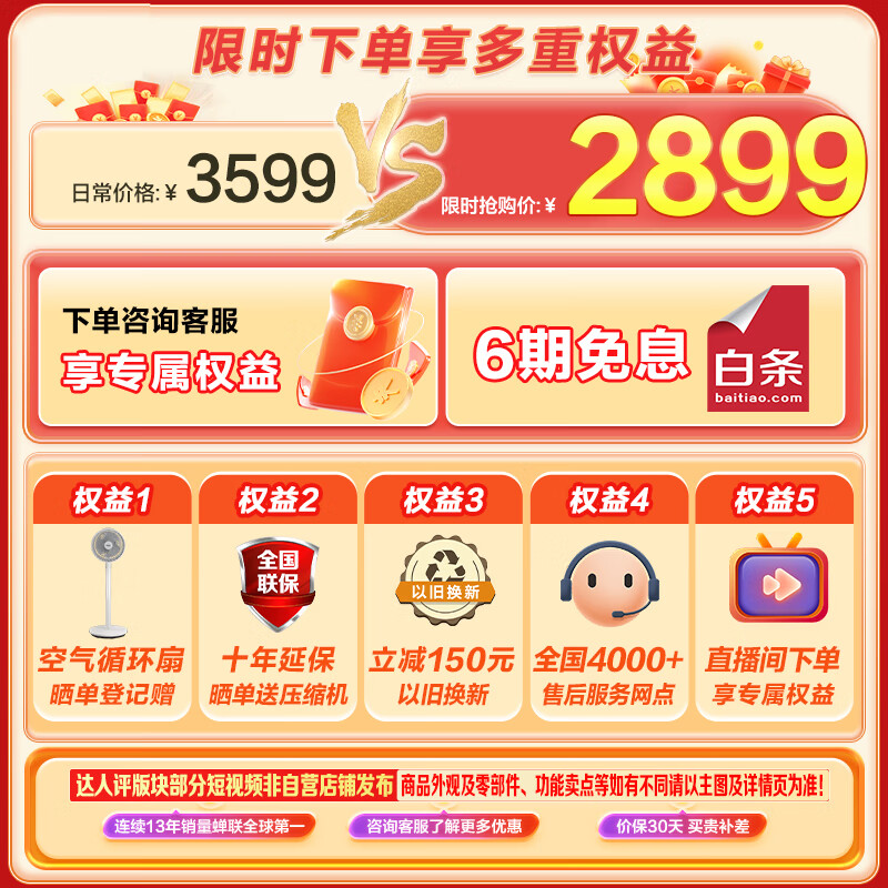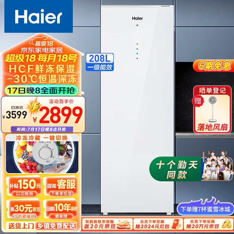 海尔(Haier)珍味系列208升风冷家用立式冰柜 冷藏冷冻柜抽屉式冷柜小冰柜家用小冰箱BD-208WGHW1以旧换新价格:2899.00元!