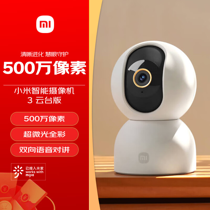 小米智能摄像机3云台版500万像素3K 超微光全彩 AI人形侦测手机查看双频家用摄像头婴儿看护器监控价格:219.00元!