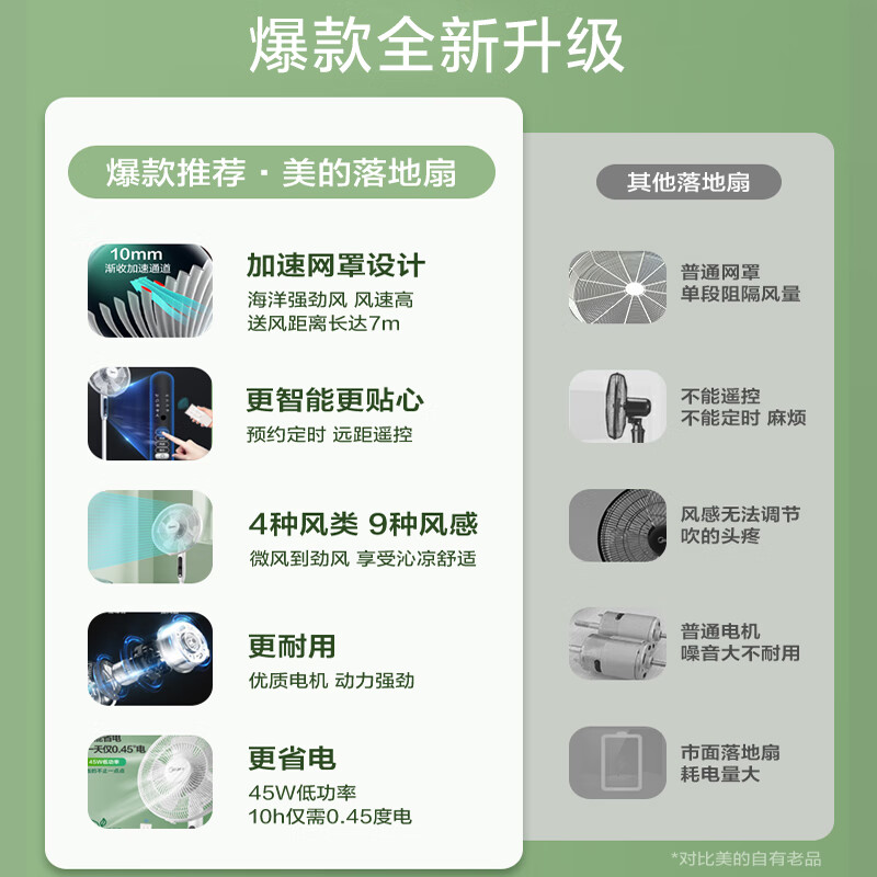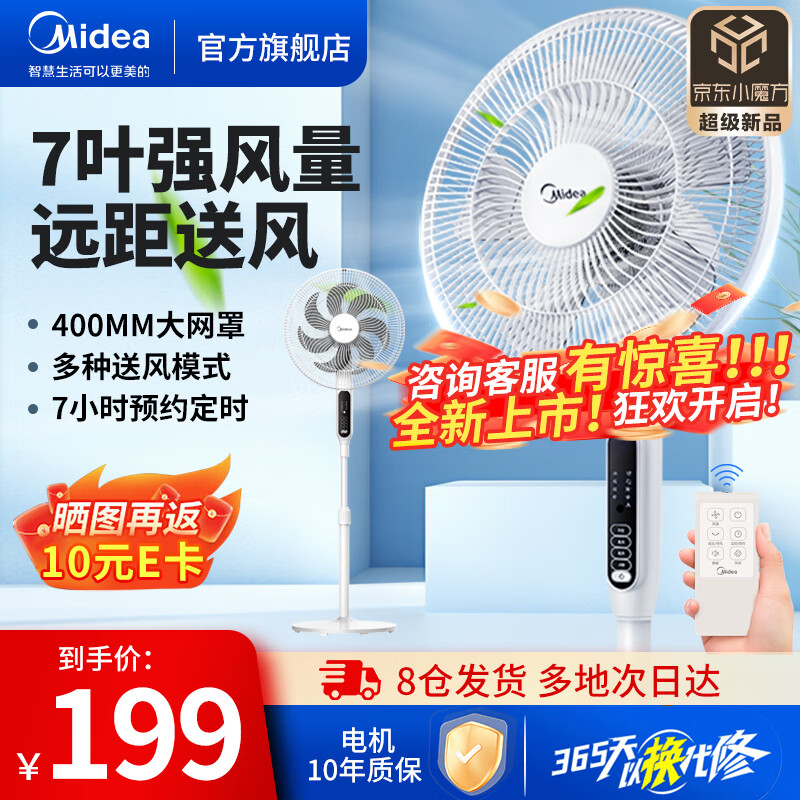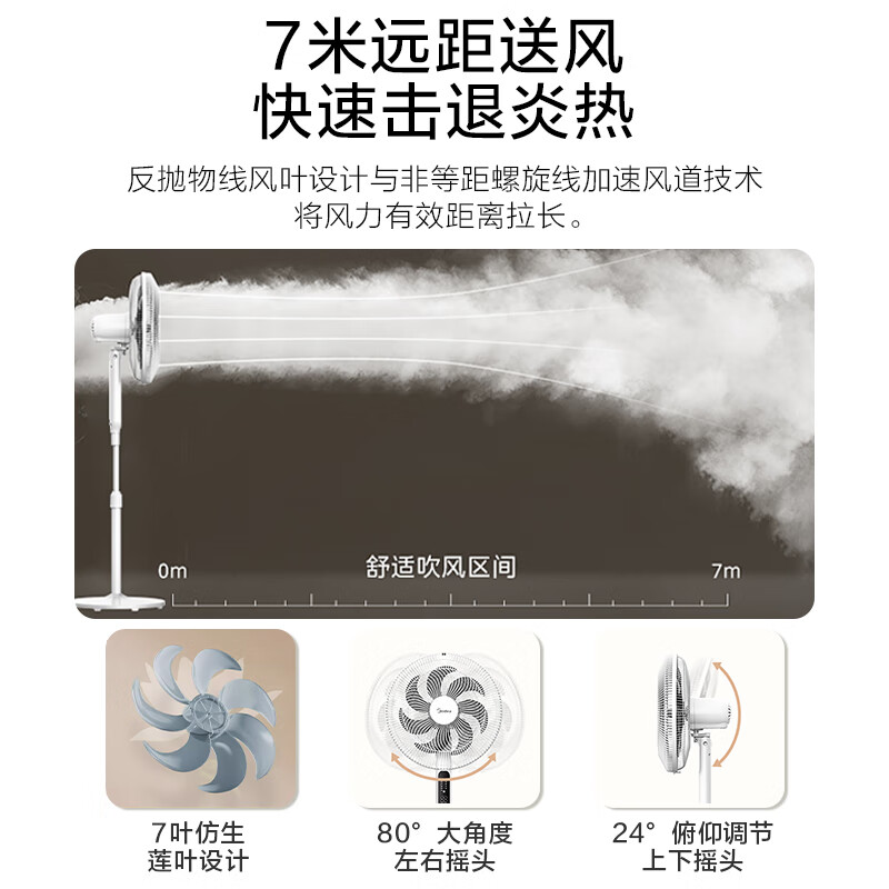 美的(Midea)电风扇家用落地扇7叶大风量定时电扇客厅卧室升降摇头扇安静循环风扇通风扇加密网罩 7米远距送风-快速送凉-远程遥控操作35BR价格:219.00元!