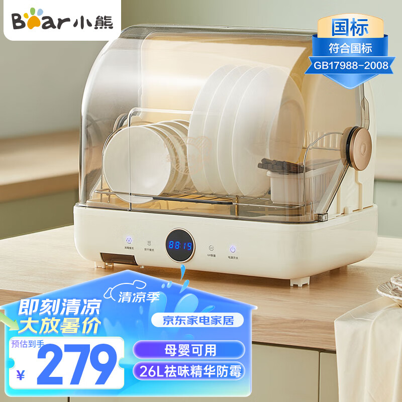 小熊(Bear)多功能消毒柜家用小型桌面台式 厨房碗筷刀架立式宝宝母婴奶瓶消毒碗柜 紫外线保洁柜ZTD26-A28M5价格:279.00元!