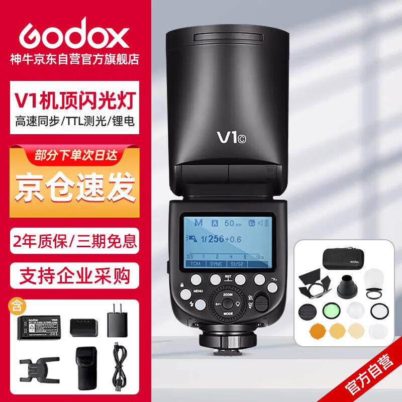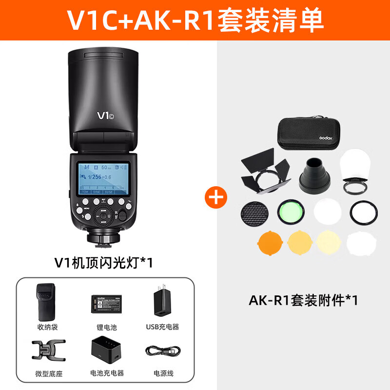 神牛V1机顶闪光灯单反相机外拍摄影补光灯户外人像高速同步TTL热靴闪光灯【V1+AK-R1附件】 佳能版价格:1660.00元!