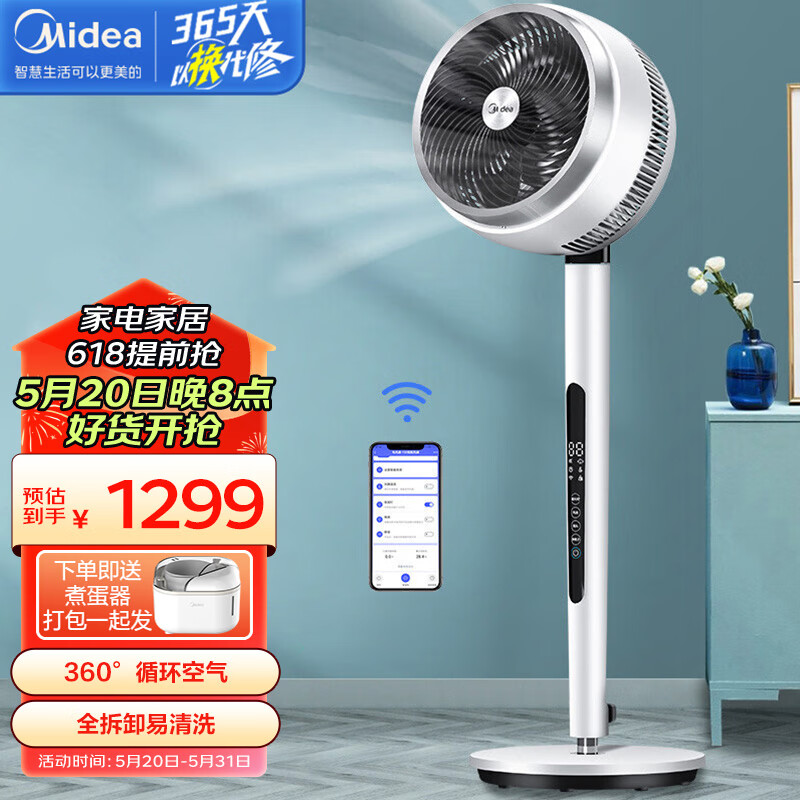美的(Midea)电风扇智能遥控升降循环落地扇上下左右自动摇头净化空气8米远距送风家用GDE24DJ(线下同款)价格:1549.00元!