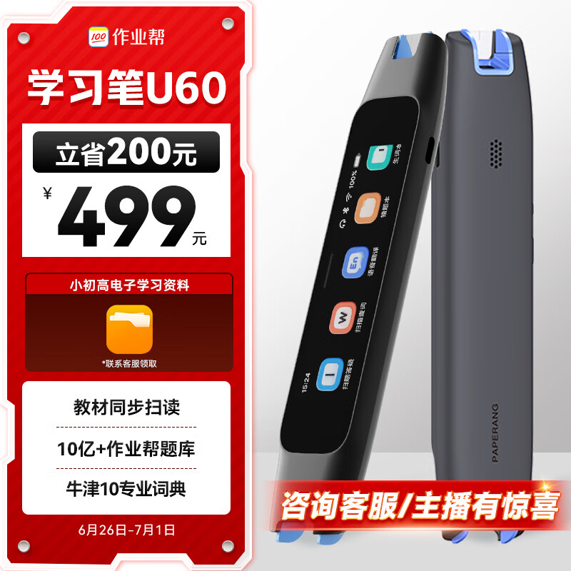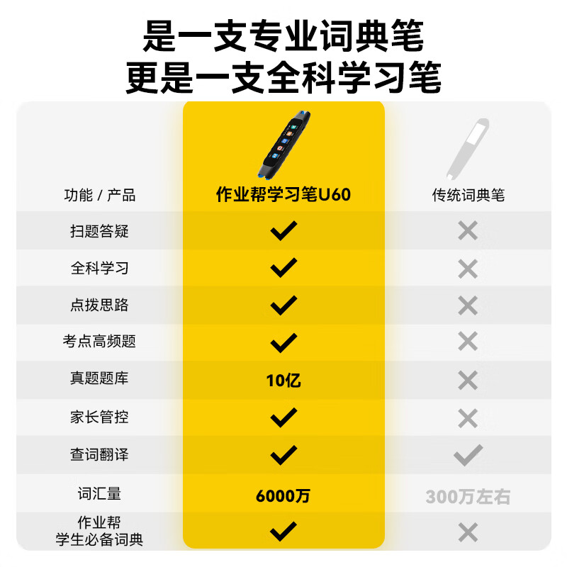 作业帮全科学习笔U60 小初高英语点读笔学习机词典笔翻译笔中英文翻译机 10亿+题库6000W词库 3.3英寸屏价格:499.00元!