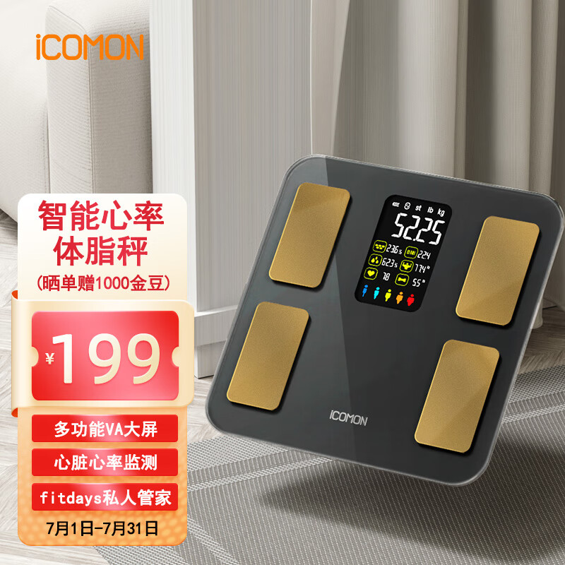 沃莱(ICOMON)体脂秤智能心率电子体重秤全家人体用APP自测数据健康检测体测仪精准数据减肥专用脂肪秤价格:198.00元!