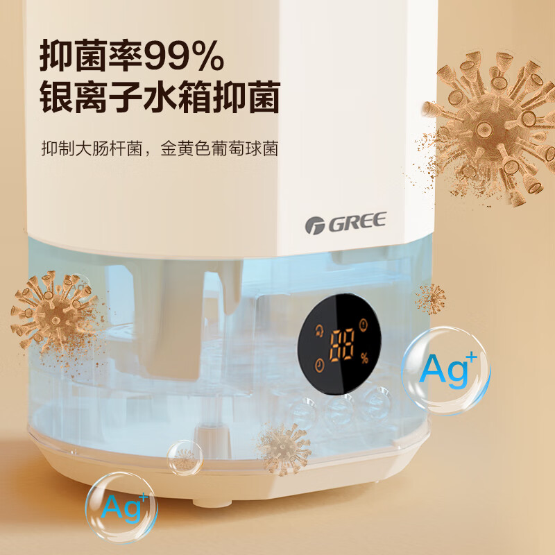 格力(GREE)加湿器静音卧室 银离子抑菌整机拆洗桌面空气加湿器立式大雾量办公室宿舍家用智能空调伴侣(40x71)价格:159.00元!
