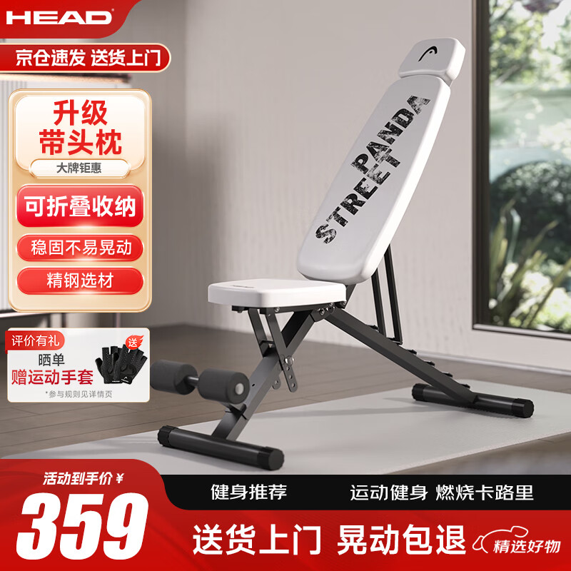 HEAD海德哑铃凳折叠多功能仰卧起坐腹肌板卧推凳健身椅家用健身器材价格:359.00元!