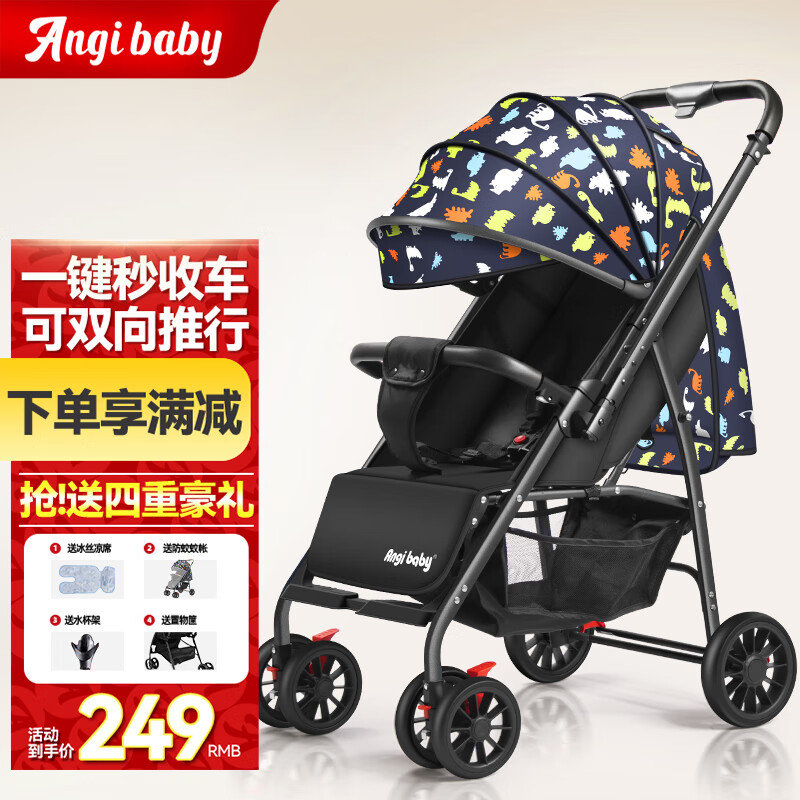 ANGI BABY婴儿推车可坐可躺可折叠减震婴儿车双向伞车宝宝bb小孩手推车童车价格:249.00元!