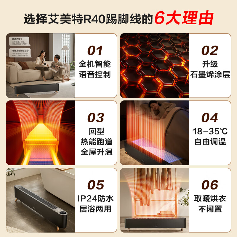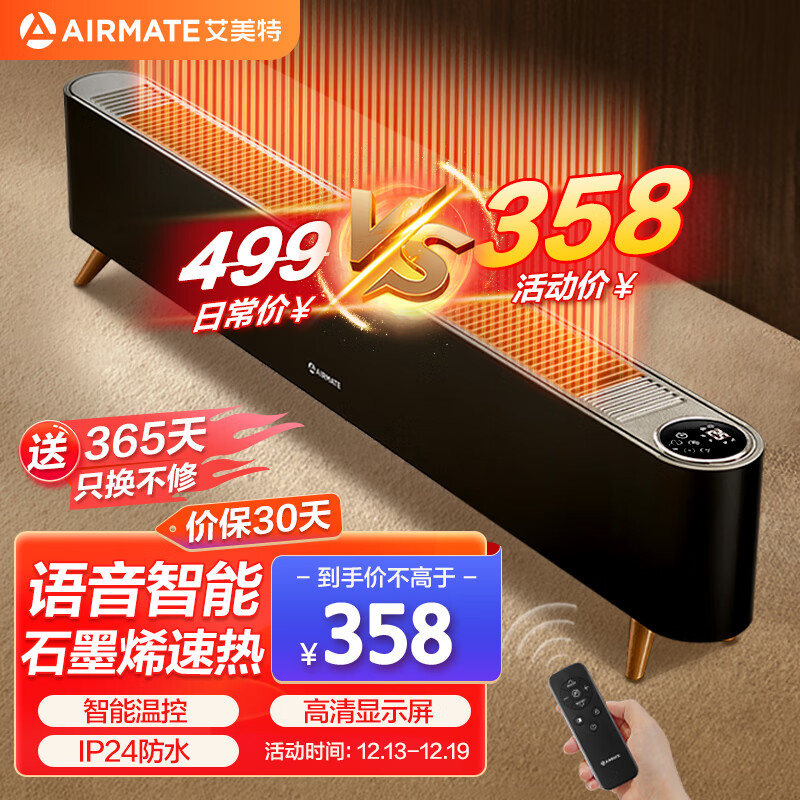 艾美特(AIRMATE)【语音智能】石墨烯踢脚线/取暖器/电暖器/电暖气片/暖风机 家用防水节能温控移动地暖 HD22-R40价格:458.00元!