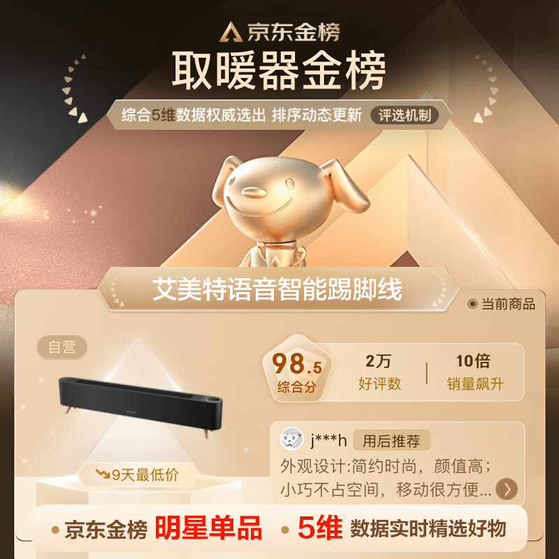 3、艾美特的取暖器,质量很好哦,还能语音控制,简单方便。加热速度快,一下就暖和了。非常棒。京东物流速度也快,第二天就到了。很满意