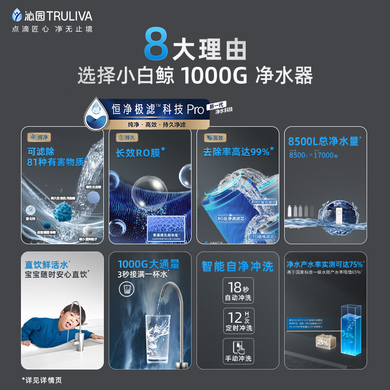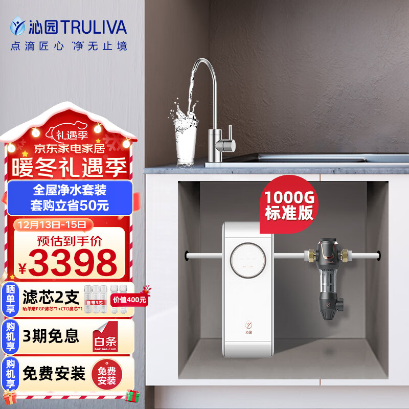 沁园(TRULIVA)小白鲸Pro1000G标准版 二件套装 净水器UR-S51045+前置过滤器P-A5510(黑)价格:3398.00元!
