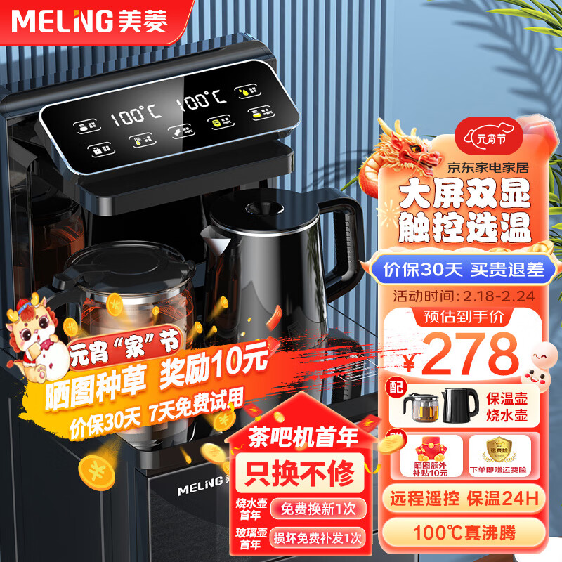 美菱(MeiLing)家用 办公茶吧机温热型立式下置式多功能智能遥控饮水机美菱旗舰【大屏遥控双显】温热款MY-C218价格:288.00元!