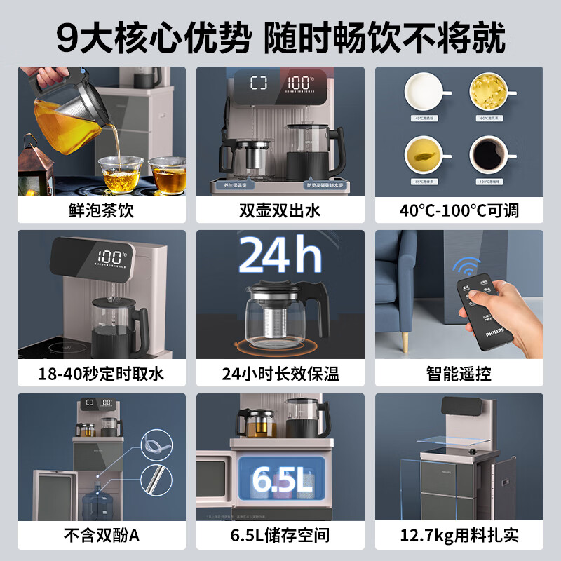 飞利浦(PHILIPS) 茶吧机多功能立式饮水机家用下置办公室饮水机全自动智能遥控上水 多段温控保温ADD4886价格:849.00元!