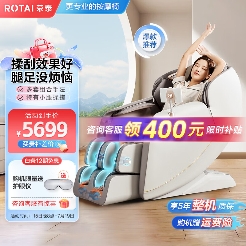 荣泰(RONGTAI)按摩椅家用全身按摩太空舱2024十老人用按摩沙发椅送老人父母礼物S56 灰啡色价格:6999.00元!