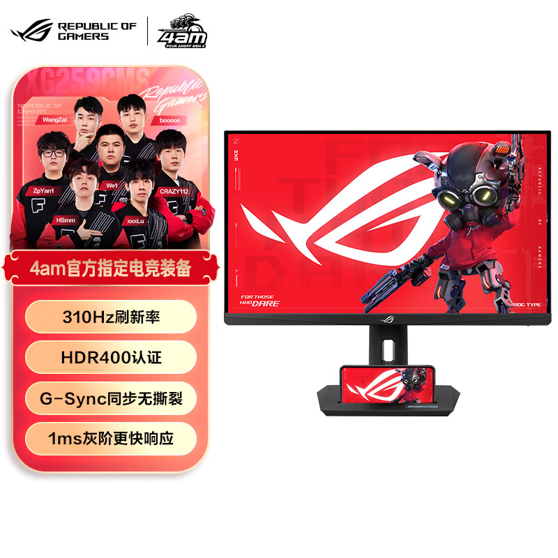 华硕ROG XG259CMS绝杀24.5英寸240Hz显示器超频310Hz HDR400旋转升降G-sync同步无撕裂 1ms灰阶响应价格:2199.00元!