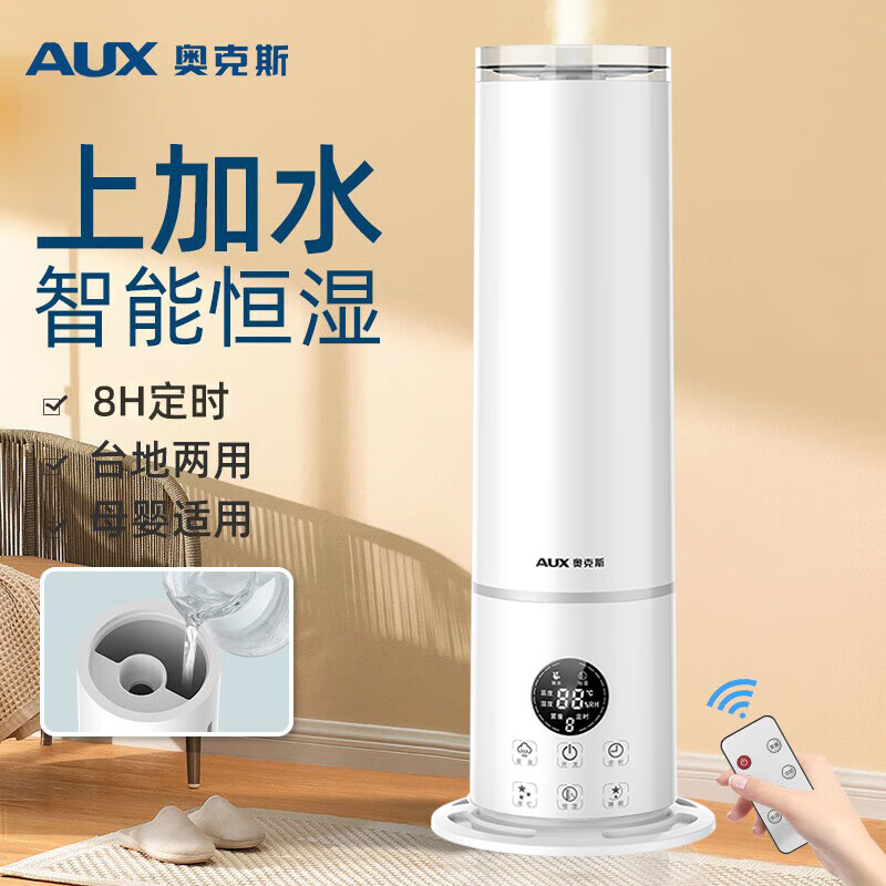 奥克斯(AUX)空气加湿器卧室婴儿大容量落地式上加水智能遥控款净化家用办公室空调加湿伴侣价格:179.00元!