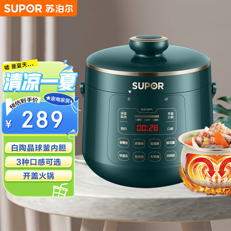 苏泊尔(SUPOR)一人食系列 电锅2.3L 白瓷陶晶球釜内胆 开盖火锅 智能预约口感多选SY-23YC8062Q高压锅价格:289.00元!
