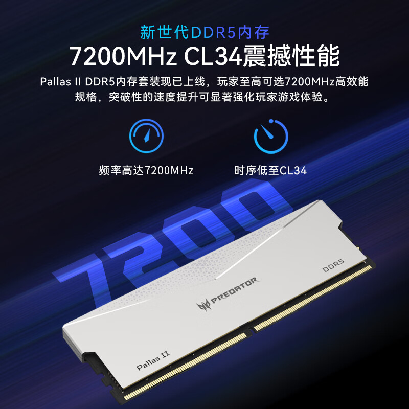 宏碁掠夺者(PREDATOR)32G(16G×2)套装 DDR5 6000频率 台式机内存条 Pallas II 凌霜系列 (C30)星光银 AI电脑存储配件价格:749.00元!