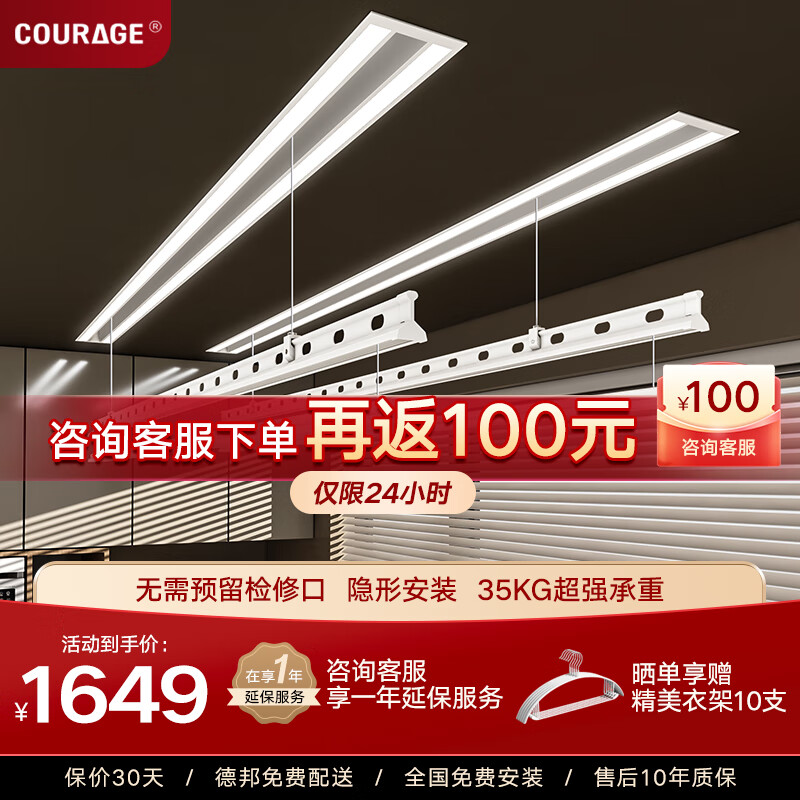卡瑞琪(COURAGE)电动晾衣架隐形阳台家用隐藏式晾衣架升降晒衣架双杆 2.4米+被杆价格:2349.00元!