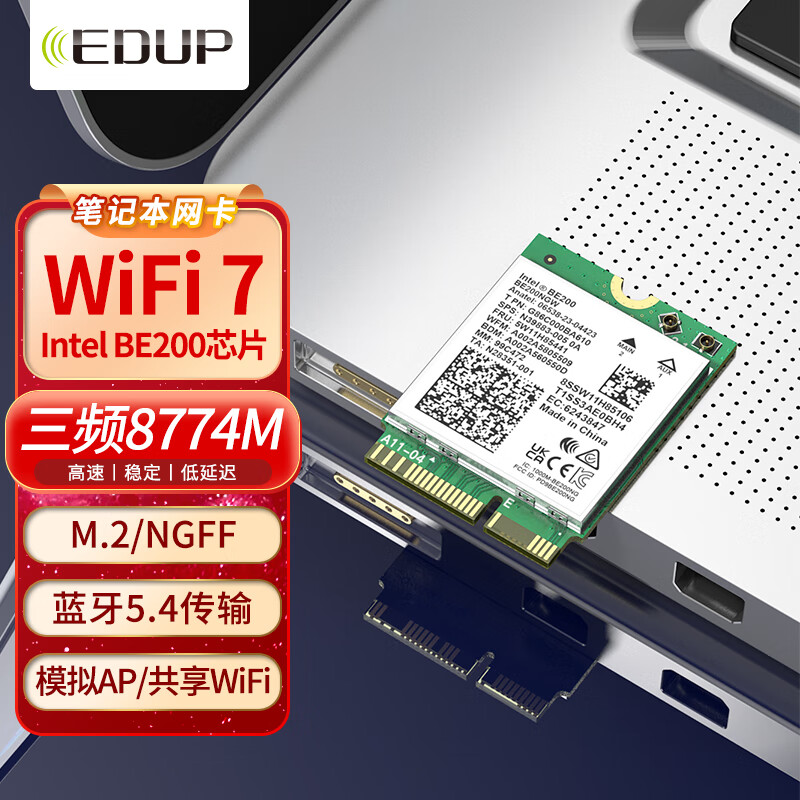 翼联(EDUP)BE200无线网卡WIFI7笔记本M2台式机电脑 三频8774M千兆接收器蓝牙5.4价格:179.00元!