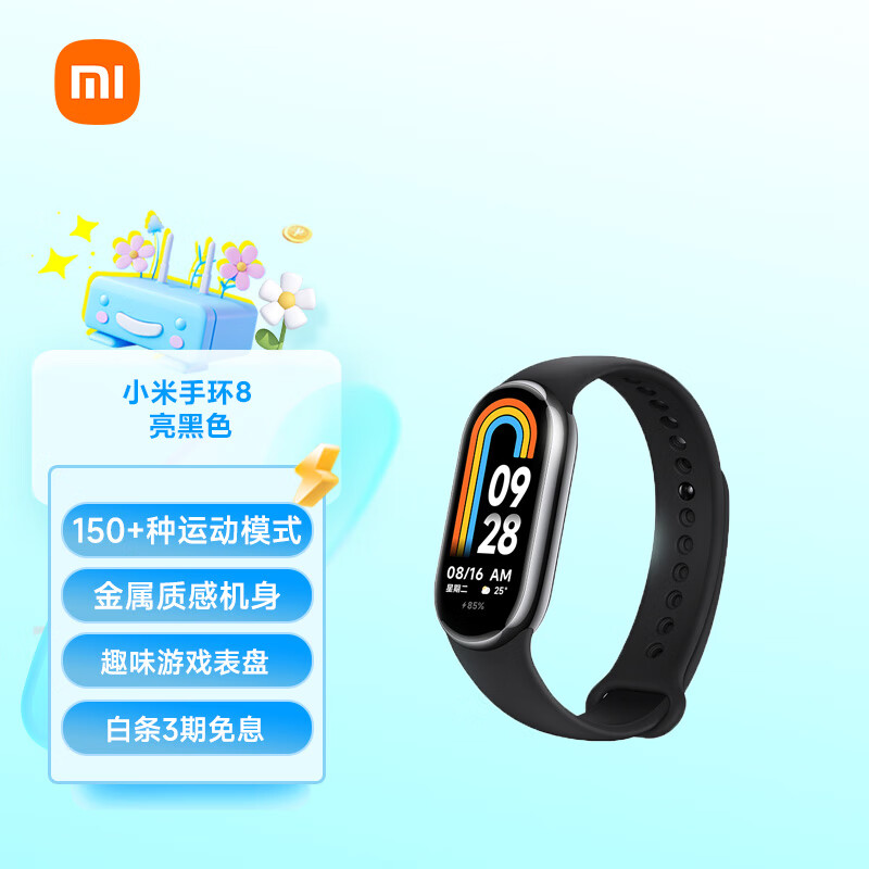 小米(MI)手环8 150种运动模式 血氧心率睡眠监测 支持龙年表盘 小米手环 智能手环 运动手环 亮黑色价格:199.00元!