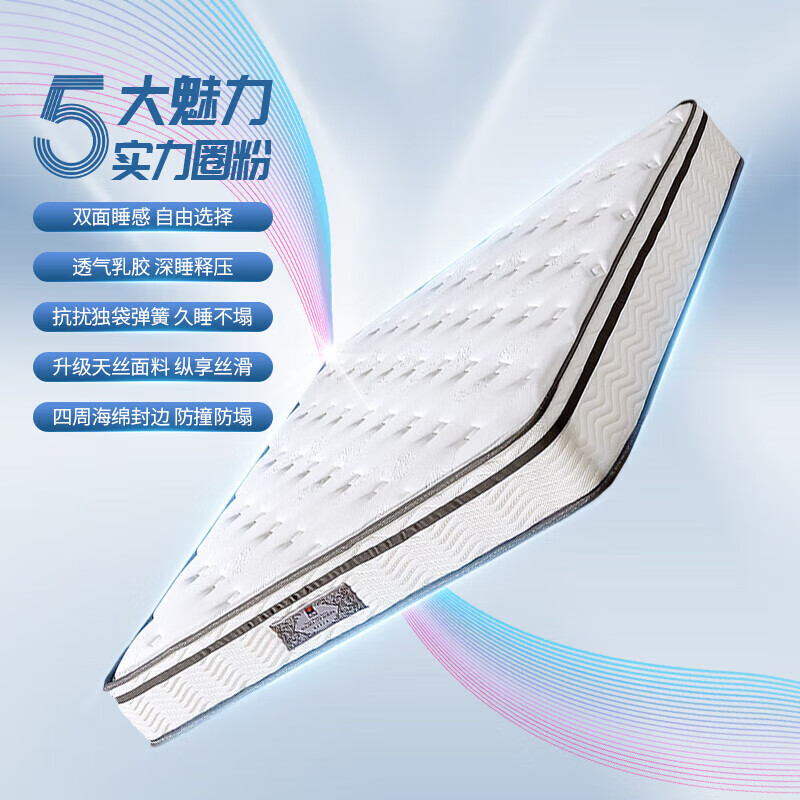 富安娜床垫 软硬适中天丝面料乳胶床垫独立袋装弹簧床垫 1.5*1.9米 静享价格:2159.00元!
