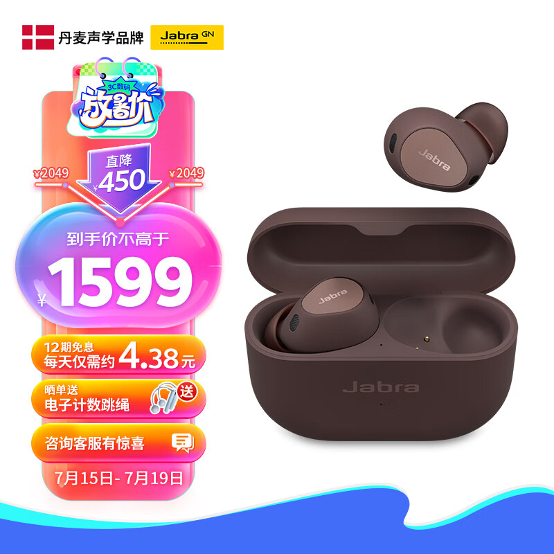 捷波朗(Jabra)Elite10 新一代E10主动降噪真无线蓝牙半开放入耳式耳机(85t升级版E10)自适应双馈主动降噪 巧棕色价格:1799.00元!