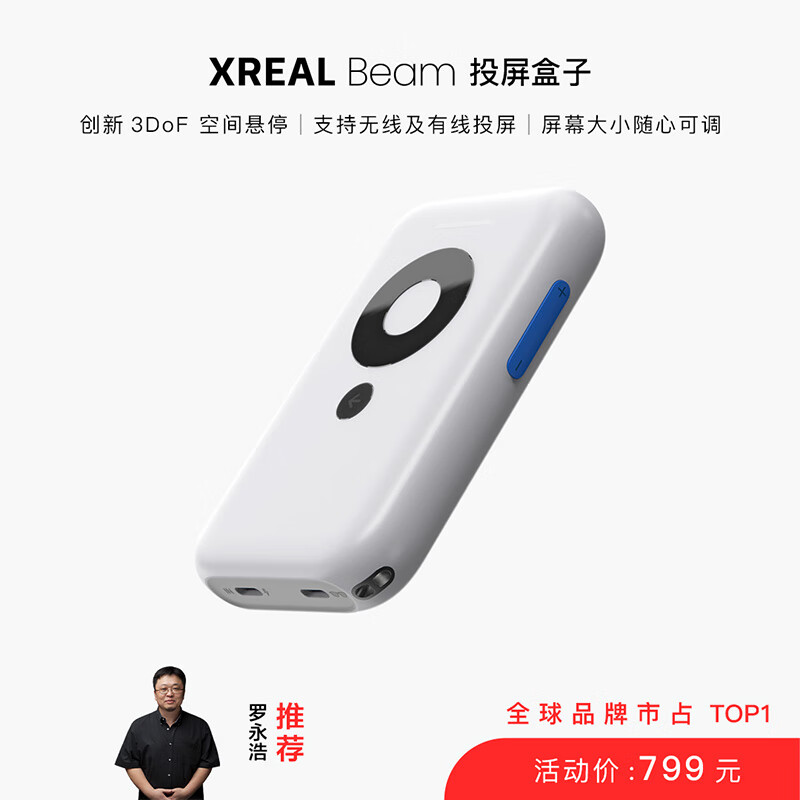 XREAL Beam投屏盒子 330英寸巨幕 智能终端全适配 创新3DoF空间悬停 搭配XREAL AR眼镜使用价格:999.00元!