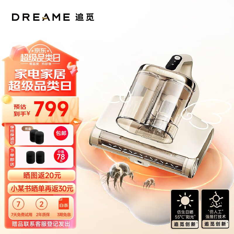 追觅家用无线手持除螨仪吸尘杀菌除螨虫床上吸尘器 360°强劲拍打长续航紫外线杀菌D30 Pro价格:799.00元!