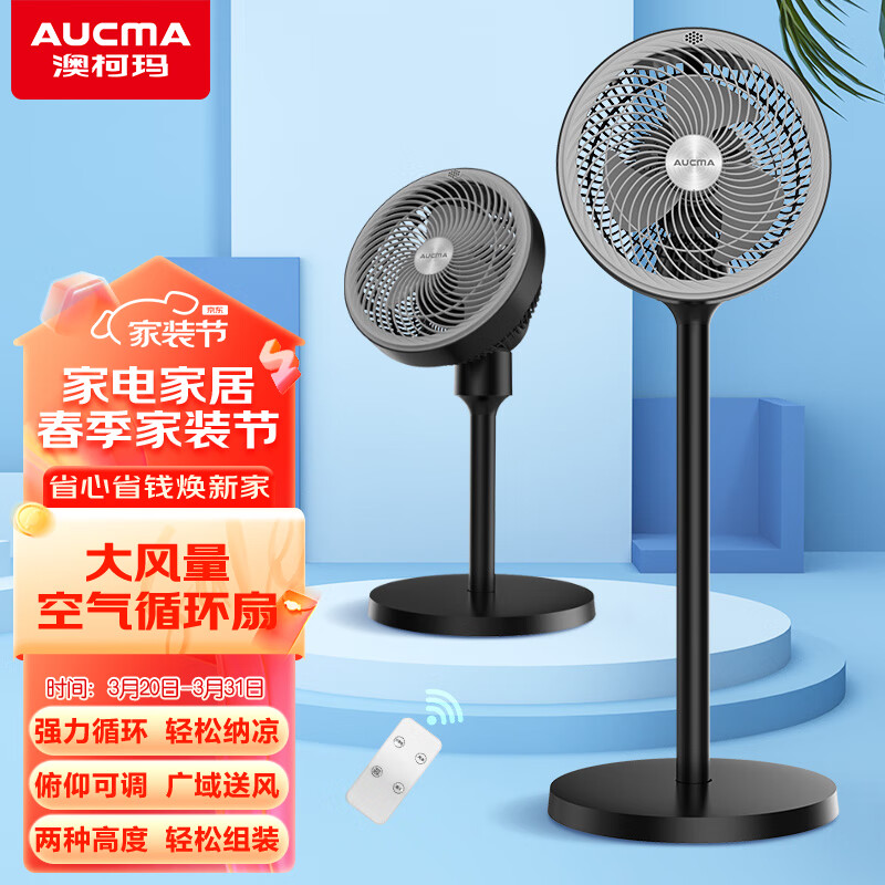 澳柯玛(AUCMA)大风量空气循环扇轻音节能落地扇100°俯仰电风扇/遥控摇头宿舍电扇台式桌面小型风扇Z301(Y)价格:146.90元!