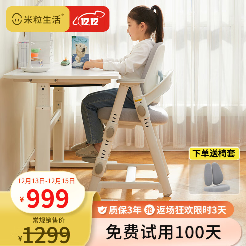 米粒生活儿童学习椅子可升降小学生写字椅家用书房座椅端正坐姿132F灰价格:1299.00元!