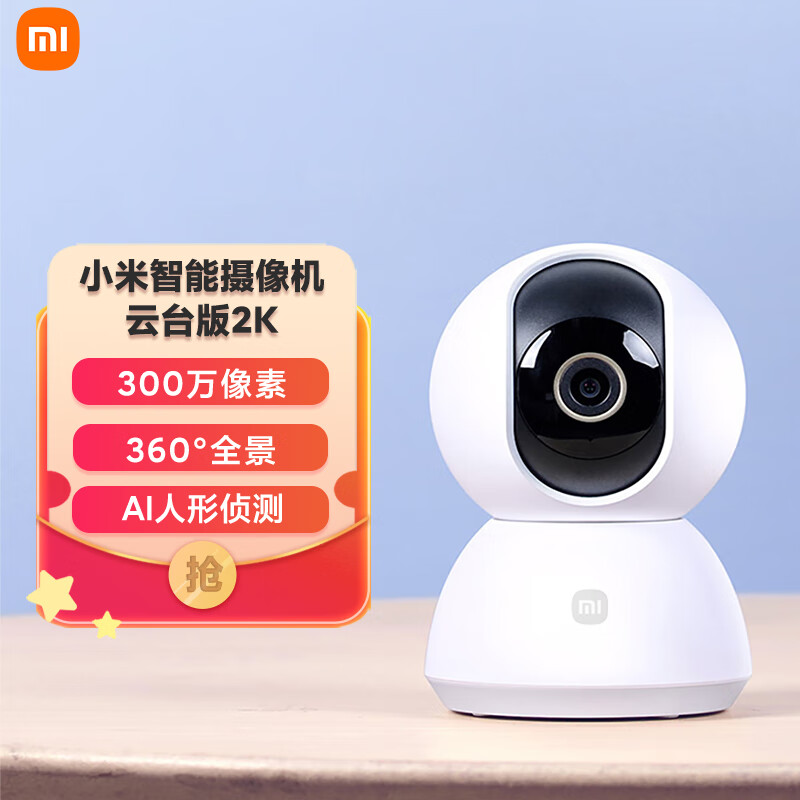 小米摄像头云台2K版家用监控器宝宝监护器红外夜视看家2K超高清手机查看智能摄像机300W像素升级版价格:179.00元!