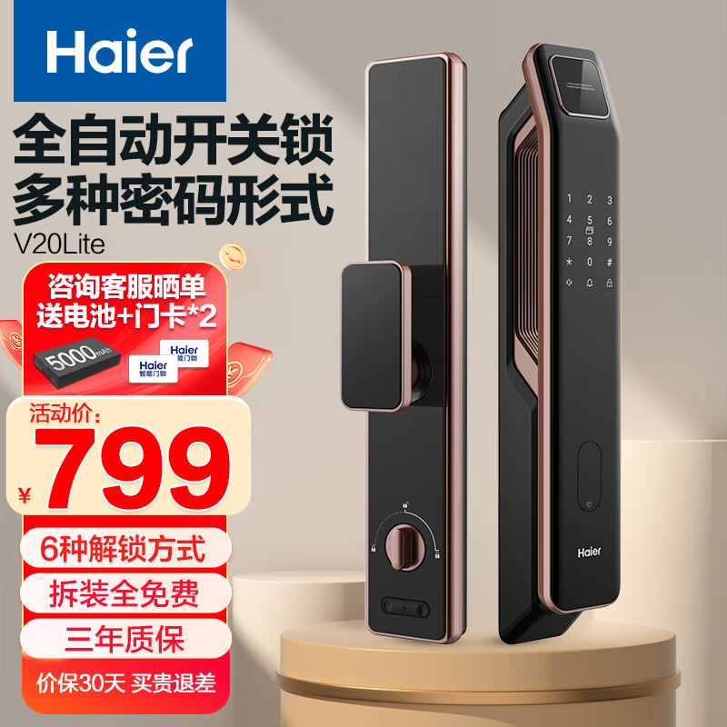 海尔(Haier)智能门锁指纹锁防盗门锁智能锁入户门防盗门指纹密码锁电子门锁HFA-20V-U1Lite免费上门安装价格:999.00元!