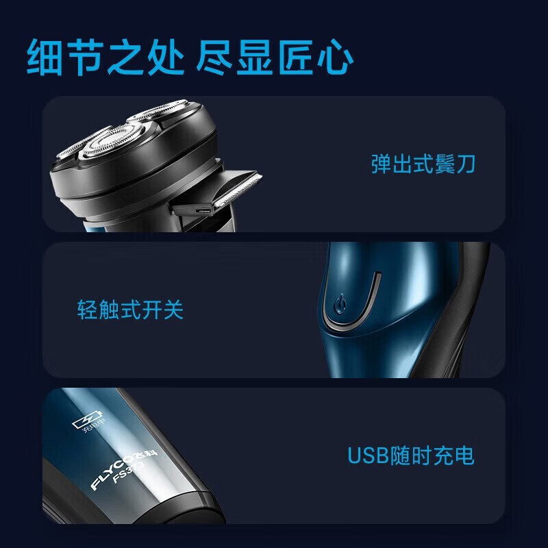 飞科(FLYCO)电动剃须刀全身水洗快充须刨刮胡刀男士电胡须刀FS373+3刀头价格:118.00元!