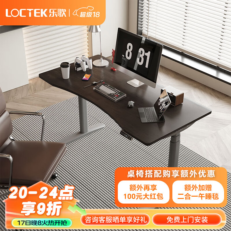 乐歌电动升降桌电脑桌站立办公学习桌 E6-HD/1.8m 凹型实木黑胡桃木色价格:3894.00元!
