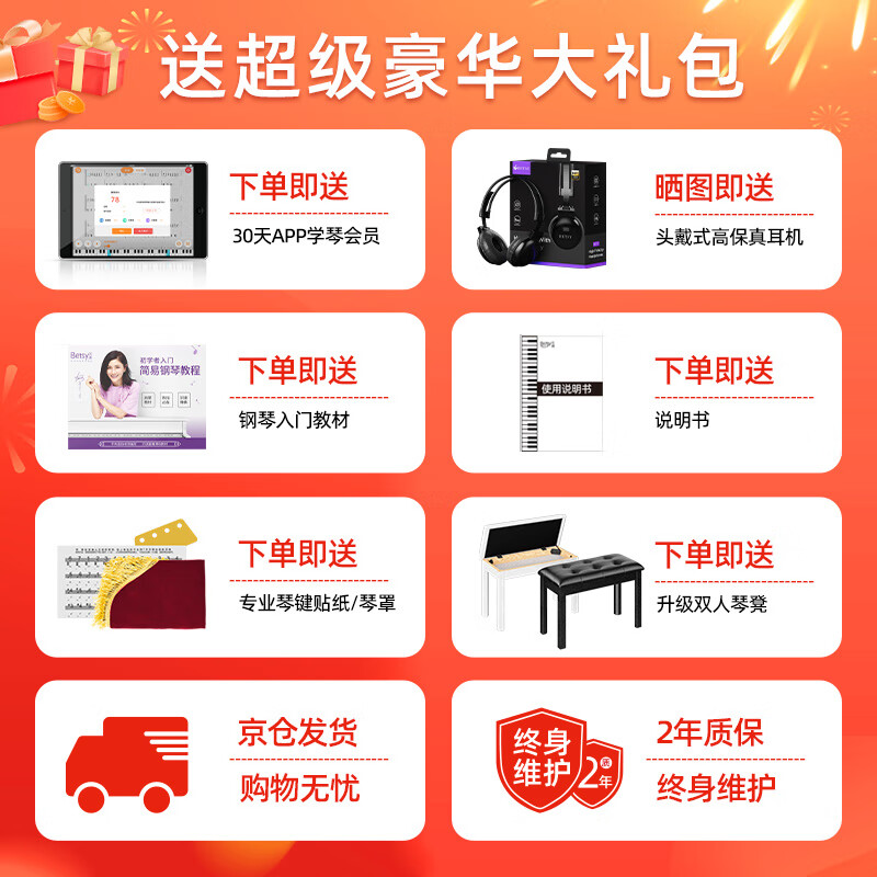 贝琪(Betsy)电钢琴重锤88键智能专业初学者幼师数码立式钢琴B389经典黑+琴凳价格:2488.00元!