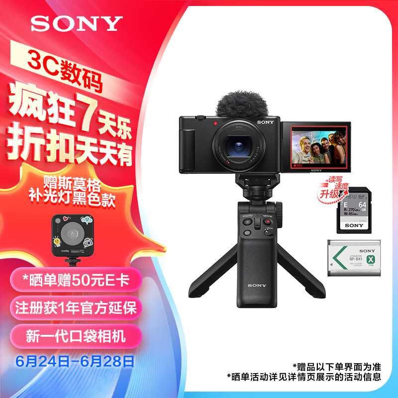 索尼(SONY)ZV-1 II数码相机 美肤/创意外观滤镜/超广角/大光圈 E64A Vlog套装 (ZV-1M2//ZV1二代) 黑色价格:6545.00元!