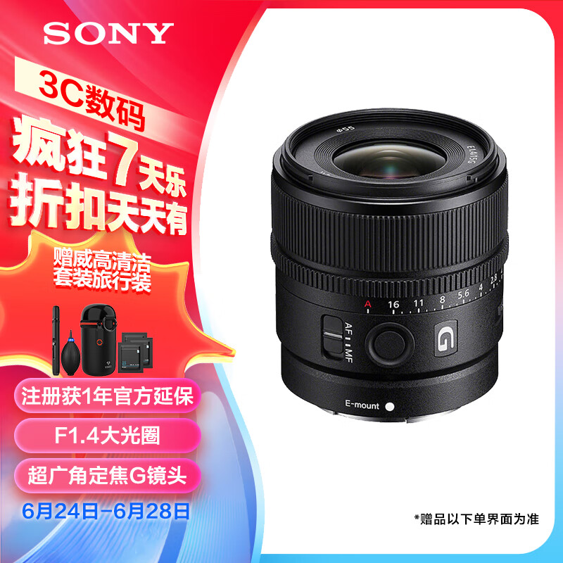 索尼(SONY)E 15mm F1.4 G 超广角定焦G镜头 轻巧大光圈 (SEL15F14G)价格:4122.68元!
