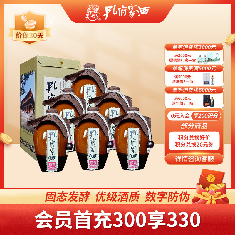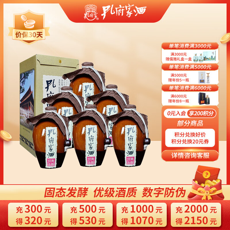 孔府家 经典大陶 浓香型白酒 52度 500ml*6瓶 整箱装 铁盒新包装 无礼袋价格:219.00元!