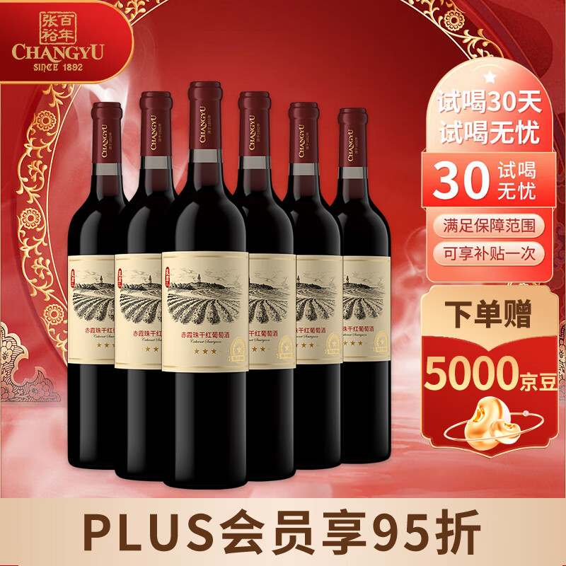 张裕 三星 星盾赤霞珠干红葡萄酒 750ml*6瓶 整箱装价格:398.00元!