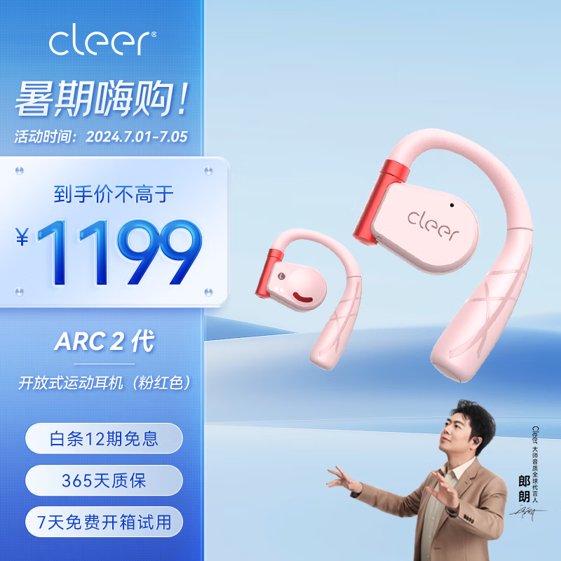 cleer任贤齐代言ARCII不入耳开放式智能运动无线蓝牙挂耳式跑步耳机骨传导升级适用华为苹果节日礼物 粉红色【运动版】价格:1199.00元!