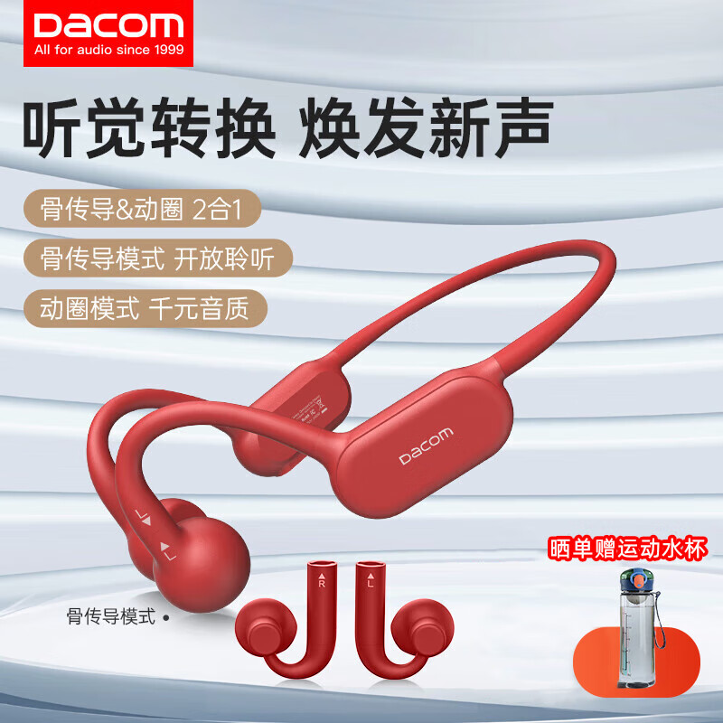 dacom G100运动蓝牙耳机骨传导动圈双模切换 不入耳入耳防水降噪跑步音乐无线耳机 适用于苹果华为 红色价格:399.00元!